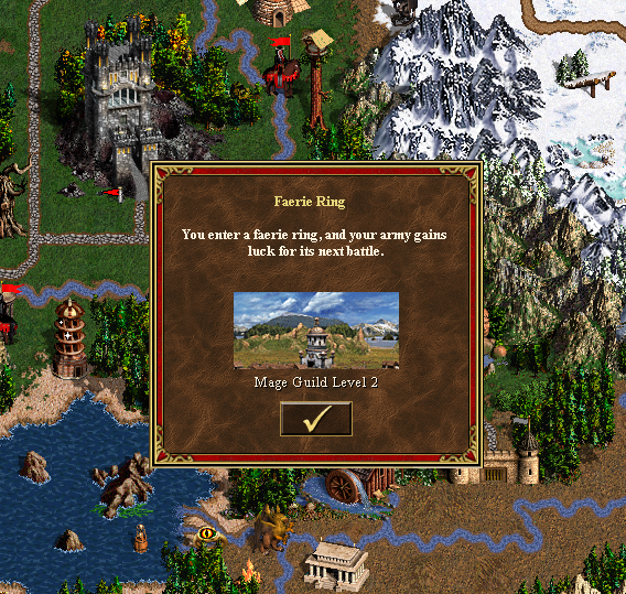 Well. That's great that Seer's Huts work now. I.e. it was nothing before when you visit, now they are fully functional. But... Looking into Saurug, MP=1630 Saurug will try to visit Seer's Hut at (31 64 0) vcmiclient: Connection.h:302: T* CSerializer::getVectorItemFromId(const VectorisedObjectInfo<T>&, ui32) const [with T = CQuest, ui32 = unsigned int]: Assertion `oInfo.vector->size() > id' failed. Aborted Now on 5th day ;) Also, minor thing. Faerie Ring screen displays Mage Guild level 2. |