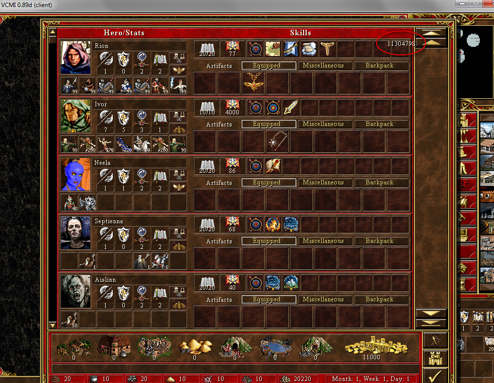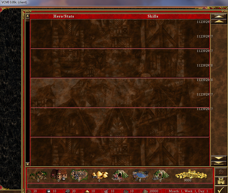 | Description | See attached test map & screenshot (taken in 0.89c, but same issue in 0.89): some funny numbers appearing on the right side on several rows. And if we swap to town view, the last digits remain visible. Once I buy the first hero, the buggy number appears only on the first line when we open K.O. next time. | ||||||||