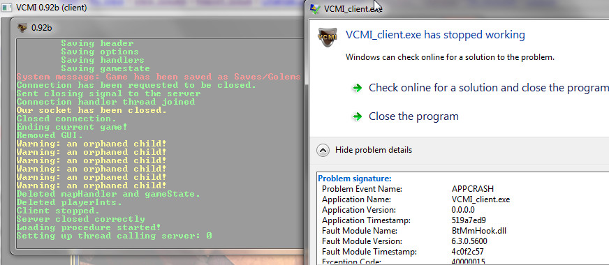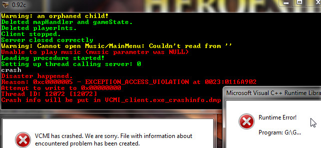 Same crash here :( I open the file "VCMI_client.exe" and it crash, can't open the game. Windows XP with VCMI v0.92 |