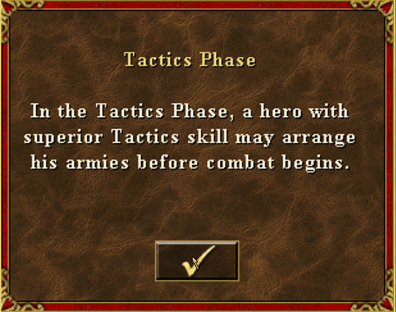 | Description | This is really low priority, as they are redundant windows for experienced players to whom VCMI is normally targeted. Nevertheless, it could be a potential starter for new coders wanting to work on a no-harm feature; or it would be interesting if it's implemented taking into consideration one of the enhancements suggested. So, the missing info windows are, in the order of screenshots: 1. The window that appears when entering battle, IF at least one hero has Tactics and - in case the 2nd hero has it as well - IF they have a different level of the skill (I think the hero with lower Tactics doesn't get the window - only a locked battle interface with Tactics buttons visible but in disabled mode - until the opponent starts battle - but someone can correct me if otherwise, or I'll confirm myself once I run into the situation). 2. The info window if we right-click on the Next Creature button. 3. The info window if we r-click on the Start Combat button. *** SUGGESTION: The first window is actually redundant for anybody who has played Heroes for a while. So for us it's just 1 extra click to get rid of it, so I don't necessarily want it as it was in OH3. Instead - if it is to be implemented at all - I would prefer one of the following solutions: a) Give it an attribute like "Hints", and then have an option in the (future) "VCMI Options" menu to disable/enable in-game hints, which could be used to disable a whole bunch if in-game redundant windows, which are of use for beginners only. b) Show it only a limited number of times, after the player gets the skill. Either just 5-10 times per game, or only once a day, or whatever seems practical for you. c) As a more advanced solution, it could be implemented as some sort of fading window, which doesn't require a click to disappear, but fades by itself as soon as the player starts moving the creatures. d) Or - why not - have it replace the 2nd info window, so if a new player wants to see what that is all about, r-clicking on "Next Creature" would return the text in the 1st screenshot below (without the check button), instead of just "Phase Wait". | ||||||||