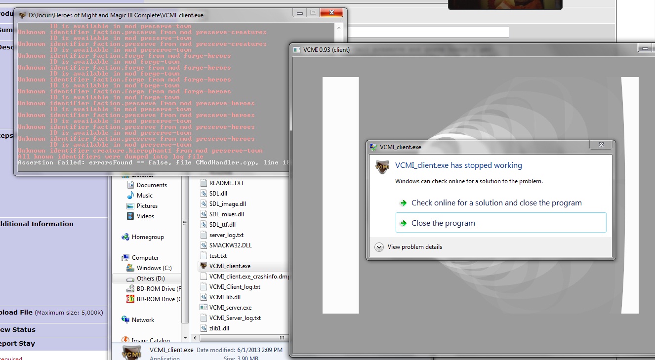 | Description | VCMI Without any mod works fine. When i install preserve and grove towns i get crash at the beggining of the intro of '3do' logo. Forge and Cove work and even mods with artefacts and others. | ||||||||