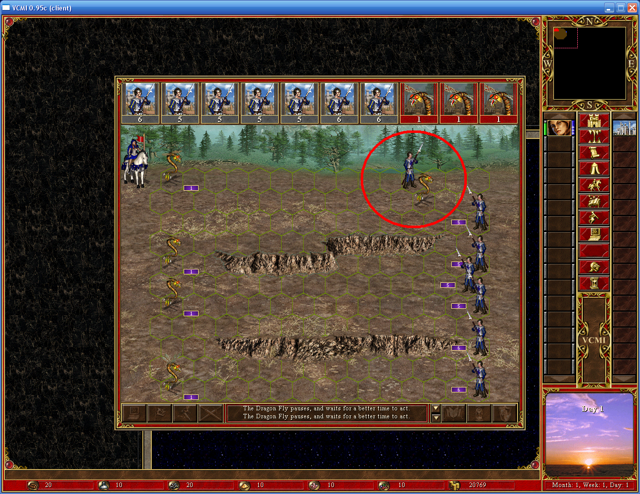 Can yo make list of situations when positioning of units or animation is incorrect? For example at the start of game I see incorrect positioning of black dragon when he is attacked by pikeman. (reporting them as comment here would be OK) Можешь составить список ситуаций когда юниты неправильно анимируется/неправильно повернуты? В начале боя я точно вижу как черные драконы неправильно стоят когда их пикинеры атакуют. (можешь выложить тут комментом) |