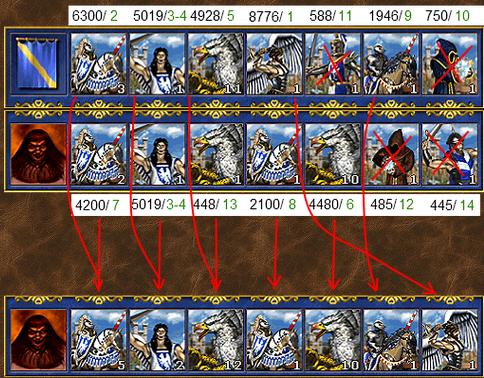 I think the original concept is not that bad either, as long as we know what criteria exactly H3 used for ranking stack strengths. We would actually need that for coding the AI. As for the human player, the Garrison interface may be a nice addition. However (unless the hero has Enhanced WoG Tactics perhaps), the player should not be allowed any creature management, except the move from Garrison to his army. So he should not be allowed to move weaker creatures to the Garrison to make place for stronger, or to even dismiss creatures (for whatever tactical reason), as that breaks the balance of the original game (particularly exploitable in multiplayer): other human players, and perhaps even an advanced AI, should be able to asses what's waiting them if they attack, based on the army the hero at the gate already has, and not have the surprise that a slot of a pikeman was replaced by a dragon. |