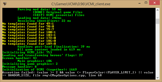 Should be fixed in https://github.com/vcmi/vcmi/commit/b97e4b1ab5559af0f3a1a47391fb55bd821c99b9 [^] |