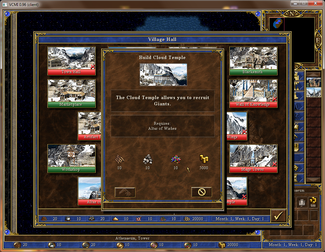 | Description | It seems to that there is an error in factions file for tower concerning Cloud Temple (requires Level 5 and Level 6 structures to be built) - in town screen it only shows it requires Level 5 building (screen). Probably this is because of error here: "dwellingLvl7": { "id" : 36, "requires" : [ "dwellingLvl5", "dwellingLvl6" ] }, Shouldn't it be: "dwellingLvl7": { "id" : 36, "requires" : [ "allOf", ["dwellingLvl5"], ["dwellingLvl6" ] ] } ? | ||||||||