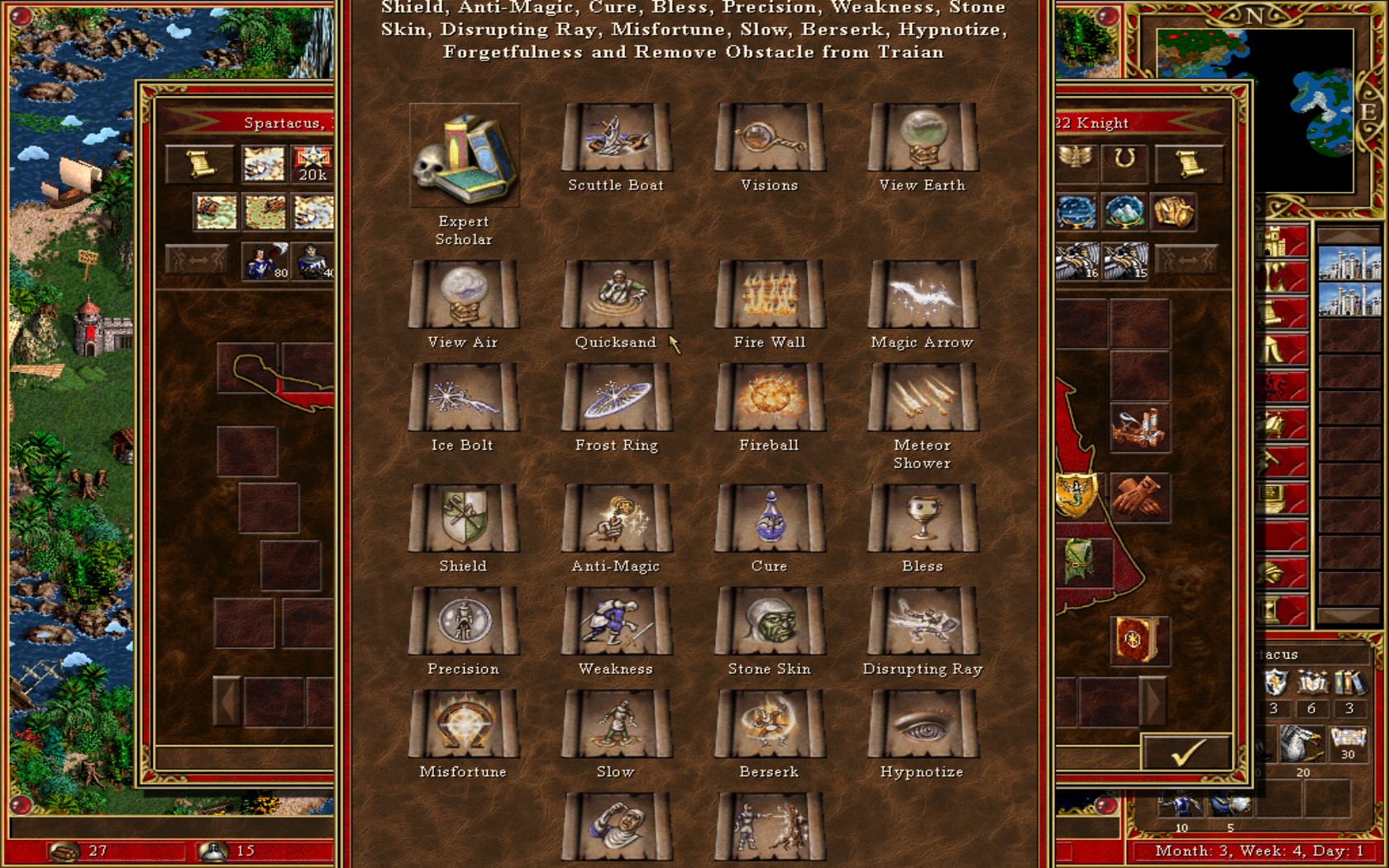 | Description | When many one hero knows many spells, and transmits them to another via literacy, it is that these spells are not intermeddle to window height. The OK button is not visible at all, you have to blindly press enter | ||||||||