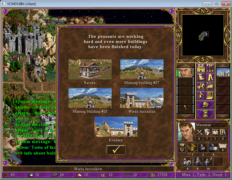 | Description | On certain map, timed event builds few buildings in town. Some of them are named "missing building" when event popup window appears. When right-clicking on picture of "missing building" VCMI client crashes. | ||||||||||||