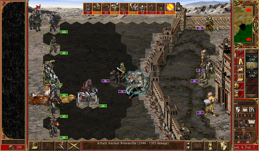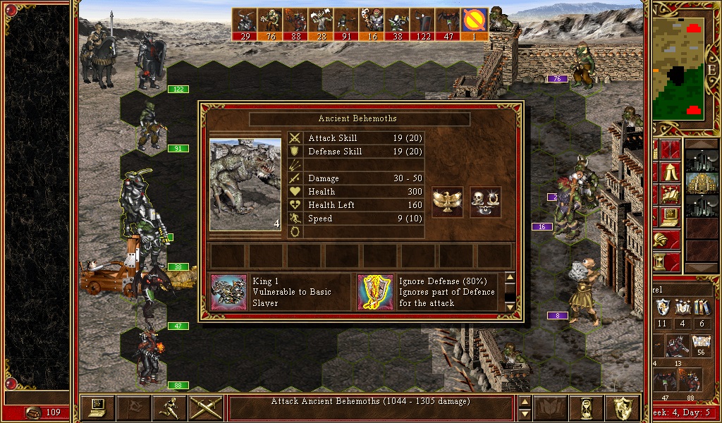 | Description | During the siege, AI's Ancient Behemoths stepped into the Moat hex with their right part and took 2 instances of Moat damage (140 for Stronghold). Attached screenshots below. | ||||||||||||