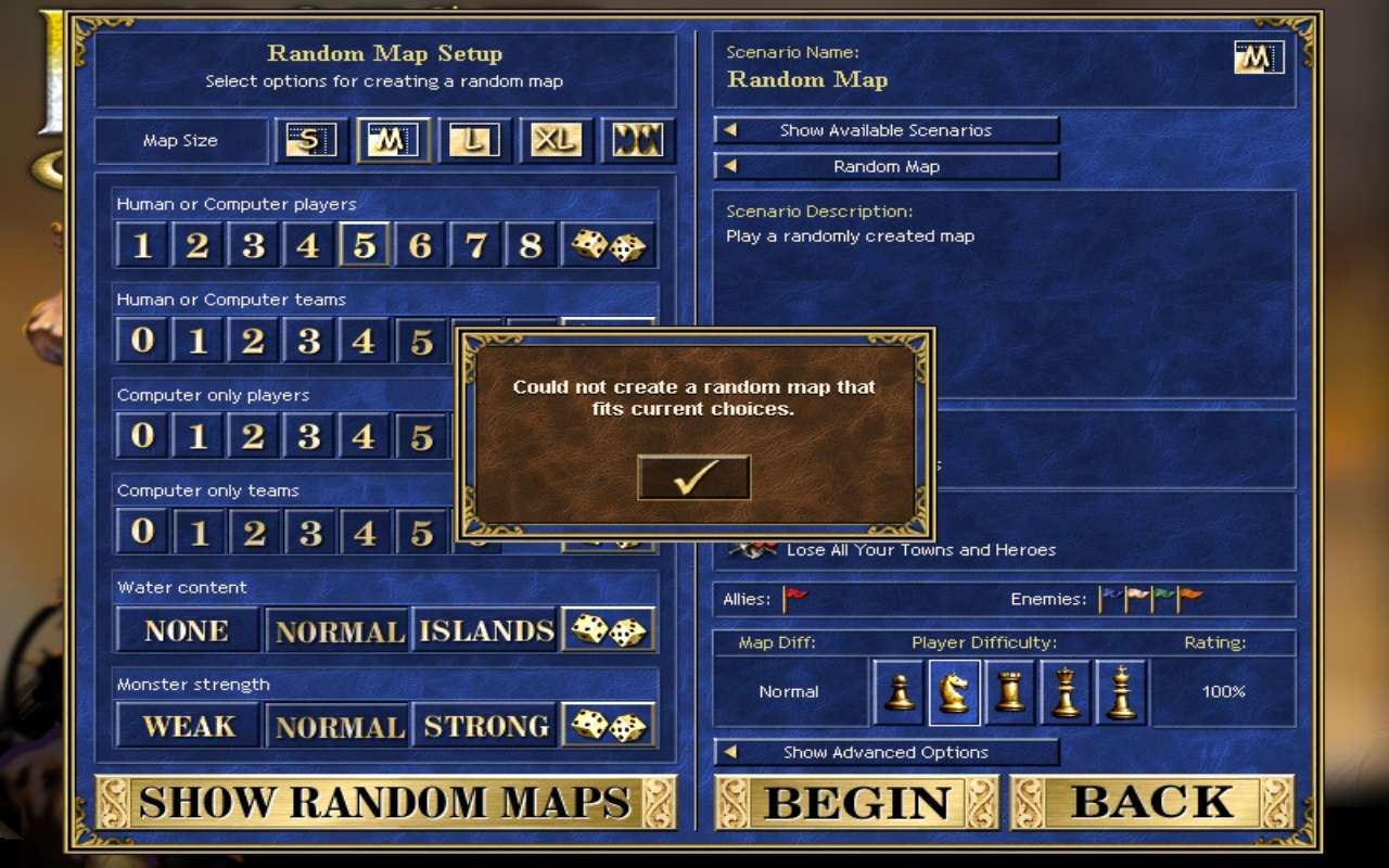 | Steps To Reproduce | Launch game. Click Random map. Choose 5 Human or Computer players Click Begin Message appears. | ||||||||||||
