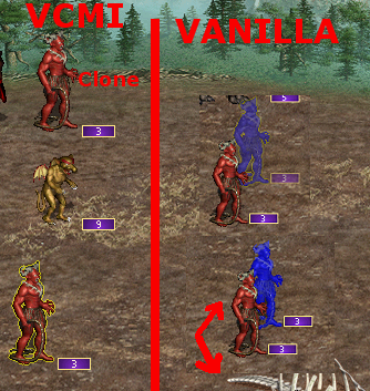 | Description | In original game when you are using cloning spell on creature, clones are appearing sliding slowly on adjacent hexes. They are also blue and while dying or disappearing, they are fading away slowly. AI in vanilla also loves to focus on them. If the cloned creature dies, clone dies with it. In VCMI clones have no visual representation, they look exactly like cloned creatures, and are always appearing at the left side corner no matter where cloned creature is placed. They also disappear instantly instead of slowly fading while attacked. | ||||||||||||