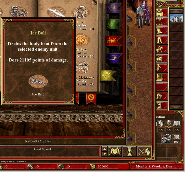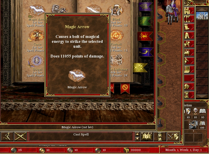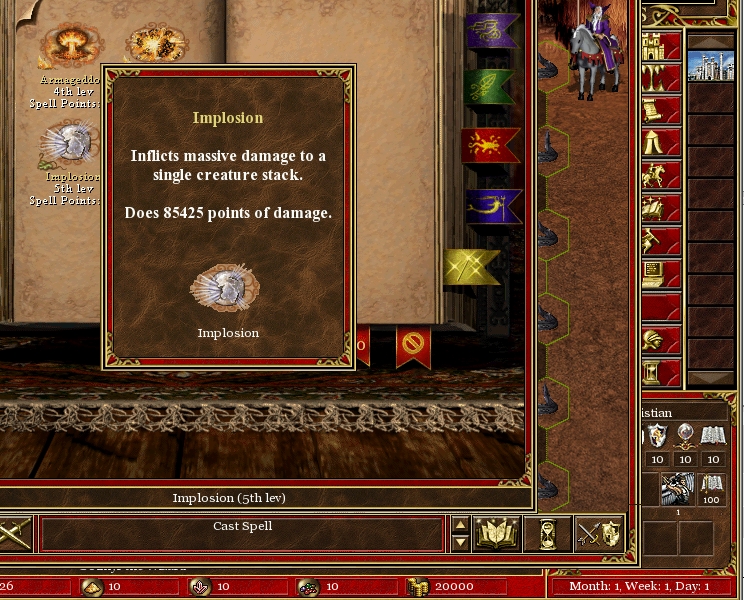 | Description | See screenshots i.e. Magic arrow with orb +50% dmg is calculated as. (SPx10+10)x100+50%(SPx10+10) so magic arrow of hero wih SP 10 and orb(50%) has dmg 11055. similar situation is with all other damaging spell. But if the dmgs are more then 99999 the dmg are a little bit changed so i.e. Implosion with SP 10 inflict 850 dmg with orb it should be 850+425=1275 dmg, Now it is like 85x1000 + 425=85425. | ||||||||