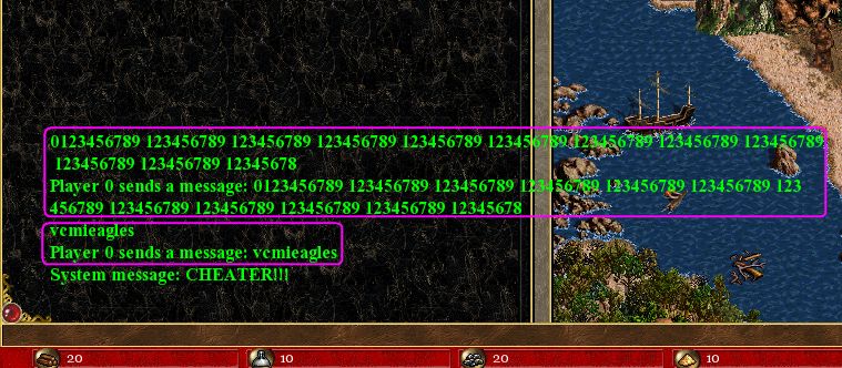 | Description | First only the message itself is displayed, followed by another line with the text "Player 0 sends a message:..." followed by the same text (see screenshot). | ||||||||