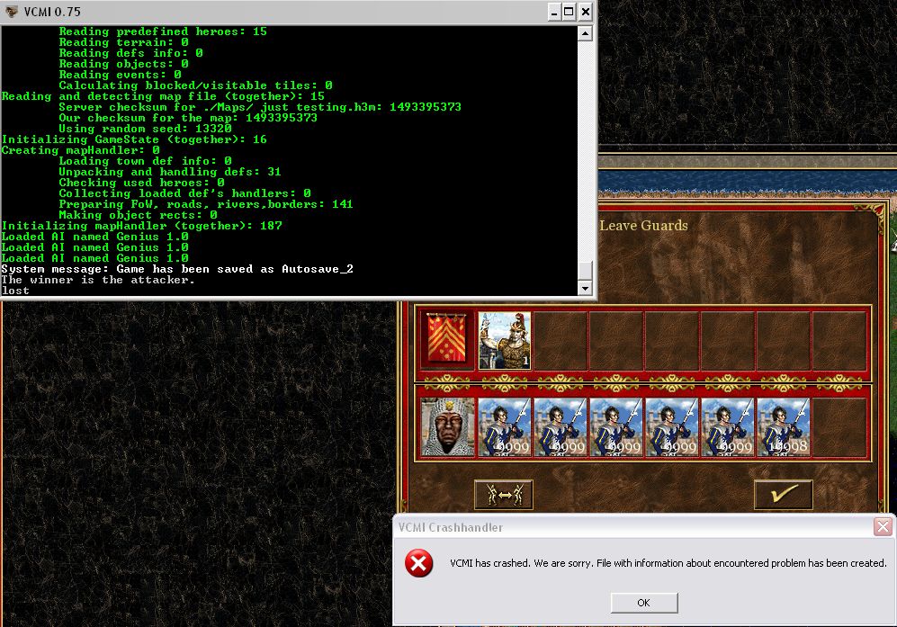 There's new behavior, automatically joined creatures vanish, while their slots remain occupied. I guess interface just doesn't release these slots. EDIT: This was fixed, however I find out that garrison interface fails when there's no Pandora in map objects list. However, that's strange as adventure objects shouldn't be removed completely. |
