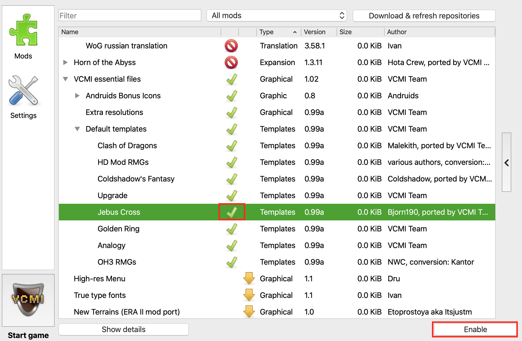 | Steps To Reproduce | 1. Start launcher 2. Expand VCMI essential files -> default templates 3. Select any template 4. Press "Disable" Expected: icon is changed from check to cross Actual: icon is not changed | ||||||||||||