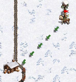 Strange. At (51,15) (the last straight diagonal arrow) hero has 202 movement points. After making diagonal move onto road on snow he has 52 points (in H3), so the move took 150 points only. It's the base cost for snow but for diagonal movement it should be multiplied by sqrt(2). So the correct cost is 212 which is more than hero has => movement should take all movement => no further move possible. Road shouldn't give any bonuses from stepping onto it or leaving it. There is no pathfinding / native creature bonus. Does anyone understands H3 behaviour here? (Btw I found a little bug with initial move points but it didn't make difference here) |