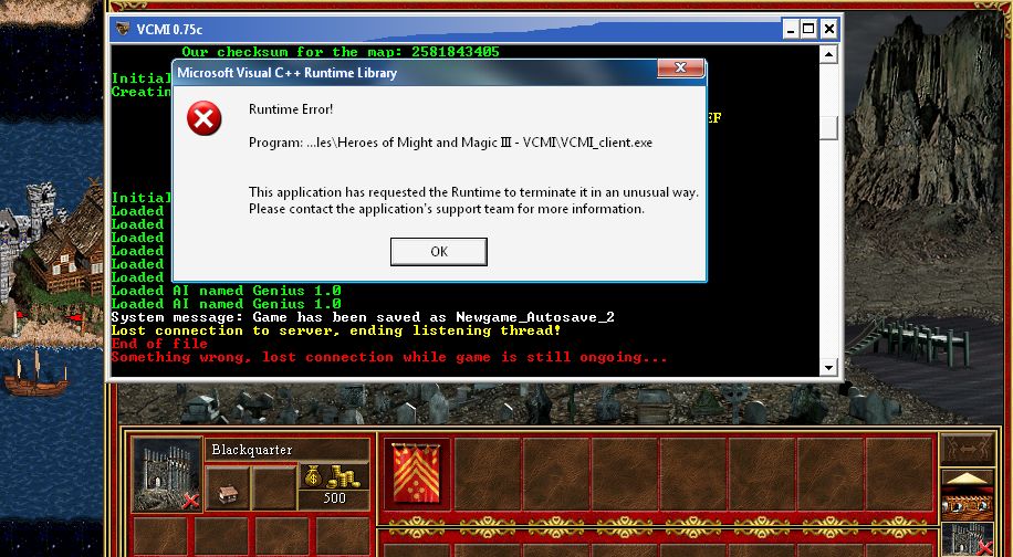 | Description | First of all, if I'm opening the Shipyard in these towns, the wrong ship is displayed (so I'm going to re-open 0000109). But when I try to buy the ship, I'm getting a notice from my firewall that VCMI_Server.exe is trying to launch C:\Windows\system32\dwwin.exe. If I allow it, I get a crash. Logs & screenshot attached. |