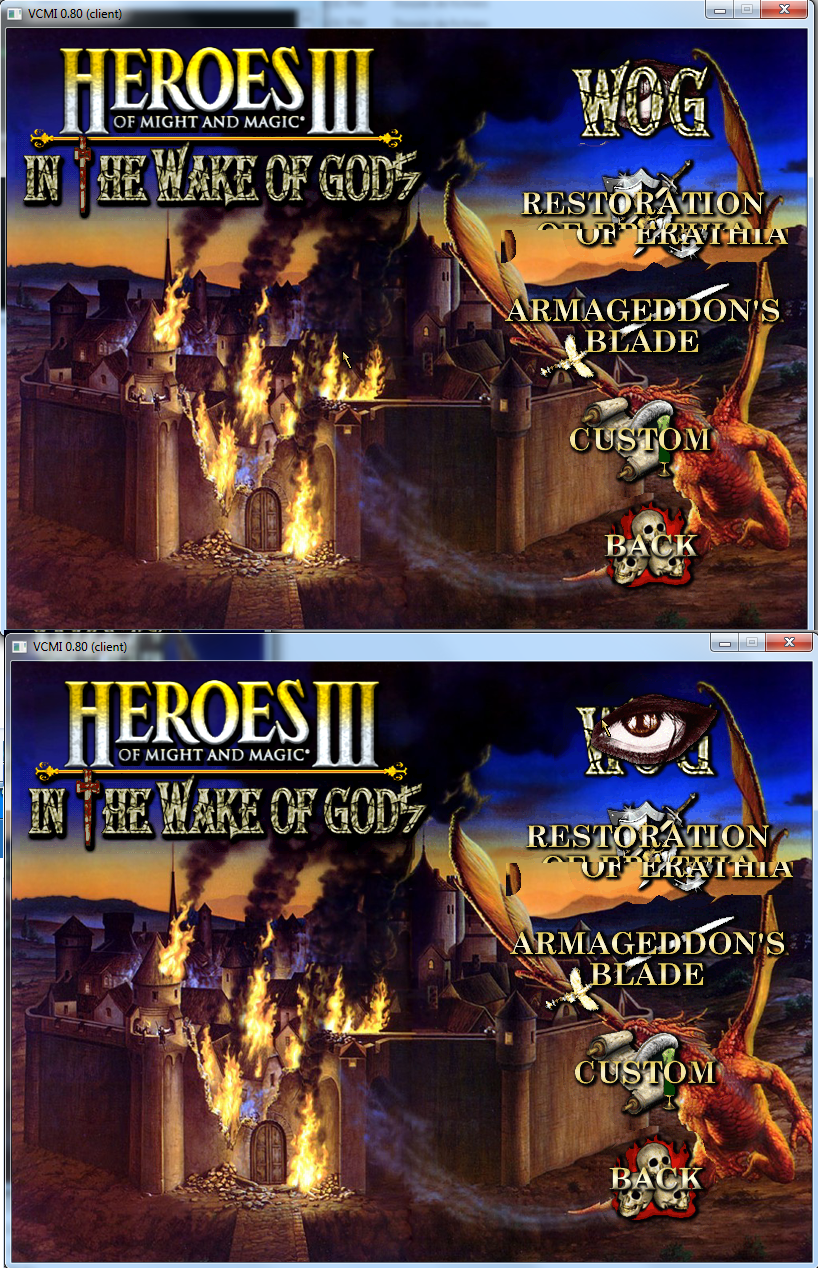| Additional Information | HOMM 3 + AB + SOD + WOG 3.58F Windows Seven I tried may resolutions but problem is still here | ||||||||
