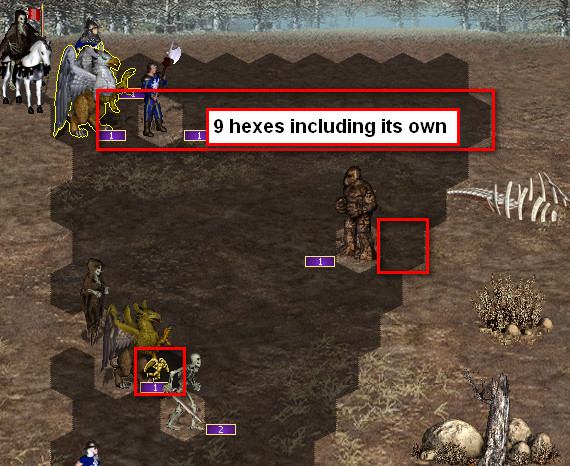 | Additional Information | EDIT: Among other effects are the facts that 2-hex creatures at banks are misplaced (i.e.: the upper left one overlaps our hero) or that 2-hex creatures can end up with their front hex outside of the hex grid if they go the other end of the battlefield. | ||||||||