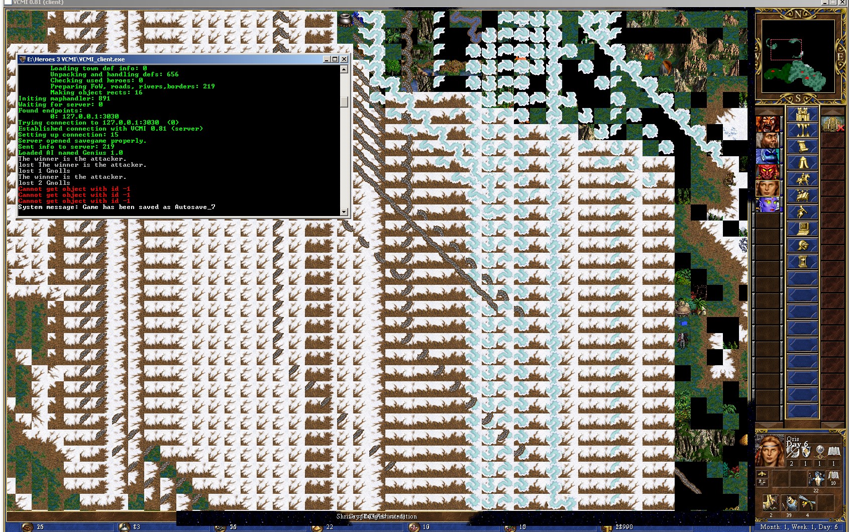 | Steps To Reproduce | Load saved game and end turn. If it won't cause the VCMI is hanged, end red player turn, make a save during blue player turn and end turn just after it. I hope it will cause the interface is frozen. | ||||||||