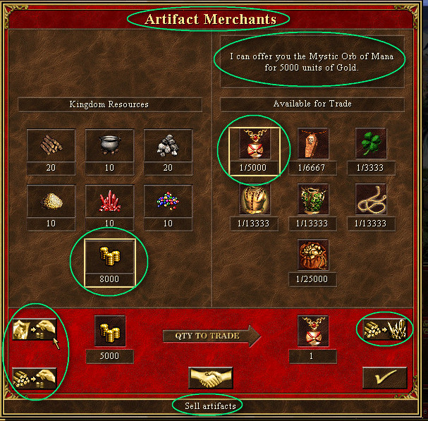 | Description | First, have a look at 0000564 & 0000562 for similar interface issues: - It's still called Marketplace - Trader info box ("Please inspect our fine ware...." default, or custom if we select an artifact) - Subtitles alignment, missing tooltips - Yellow frames for selected res/artifact What I noticed on top of the above is that we are missing the buttons: - Sell artifacts - Give resources to another player - Trade resources We do however have these buttons in the Marketplace window, but placed a bit different as compared to H3. | ||||||||||||
