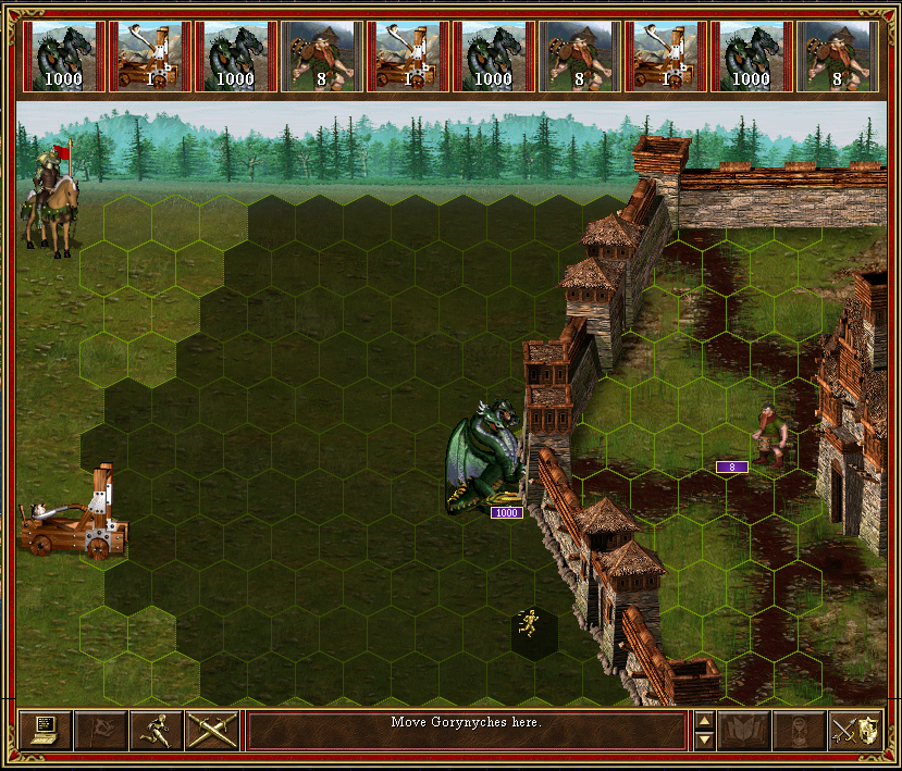 | Description | See screenshot. Notice that range on attacker's side is calculated incorectly (Gorynch speed is 8). Also, cursor is the one for walking units. After I finally broke a piece of wall (which took over 20 turns btw), Gorynch fled over solid wall with no problem. | ||||||||