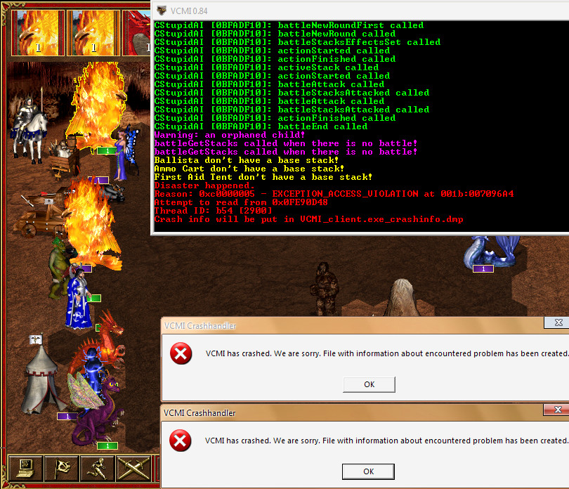 Steps To ReproduceTake map from 0000570 and attack Dessa (Orange player) with Sir Mullich. Use Defend on your creatures to let the Phoenix attack your weak creatures. 1st round it'll kill the Sharpshooter, and usually 2nd round the Nomad. If you try to resurrect the Nomad as of now, the game will crash (while if you try it on the Sharpshooter it works, and the game continues with no problem). See also attached screenshot and crashdump.