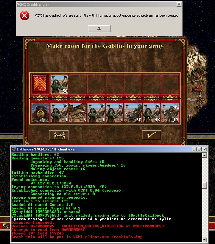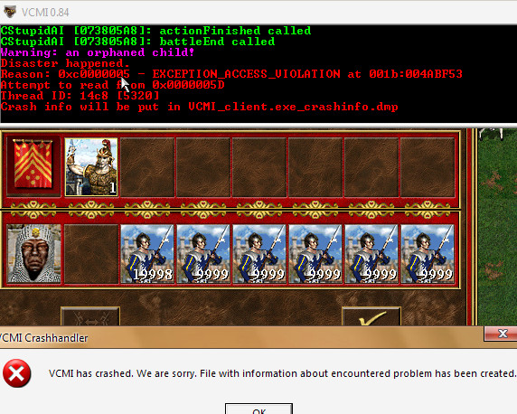 Probably related to 0000314. Before we used to have crash when we were trying to make space for the new creature, now we can make space, but we can't place the creature in our army. I'm adding screenshot & crashdump from a similar situation after I got a creature from Pandora's Box. |