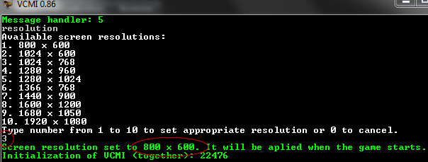 | Summary | 0000812: Console message after choosing a custom resolution always indicates 800x600 |